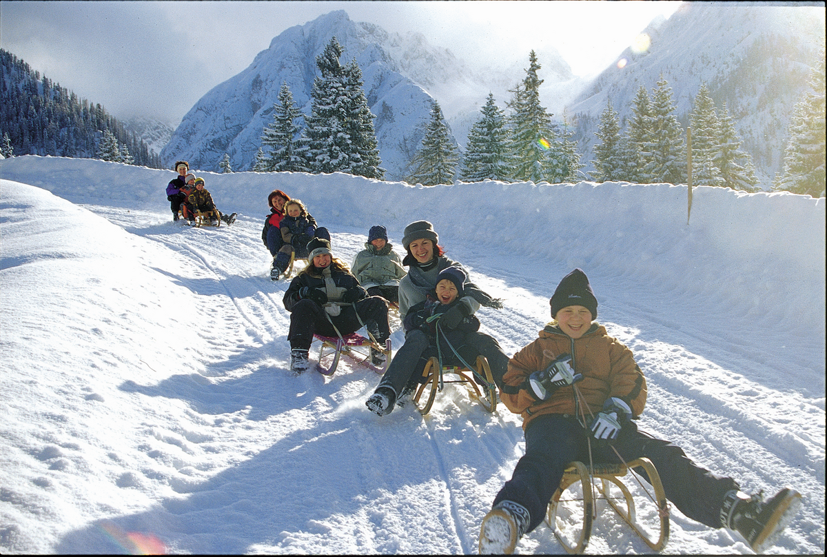 - Leihausrüstung: Klettersteigsets, Rodel